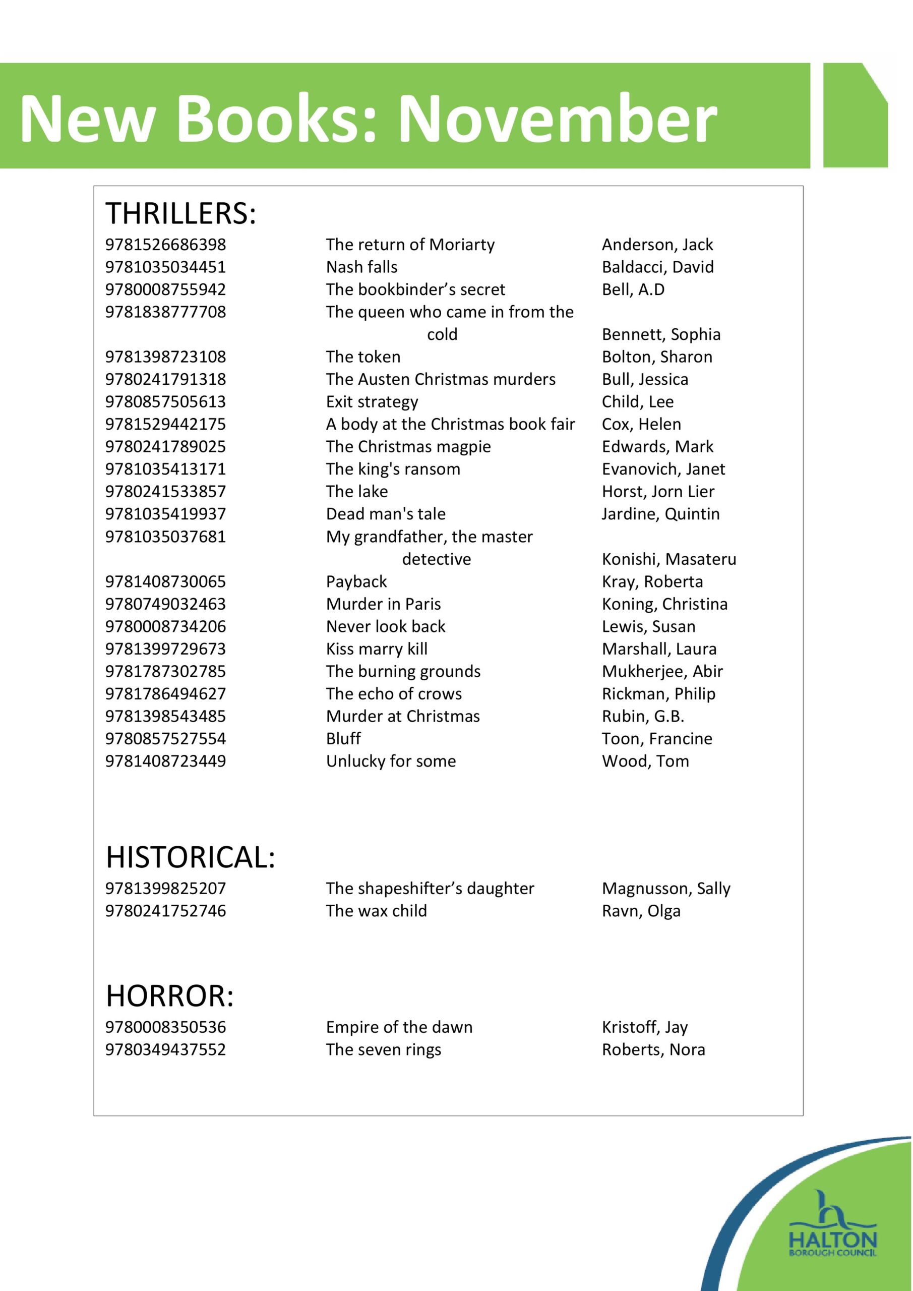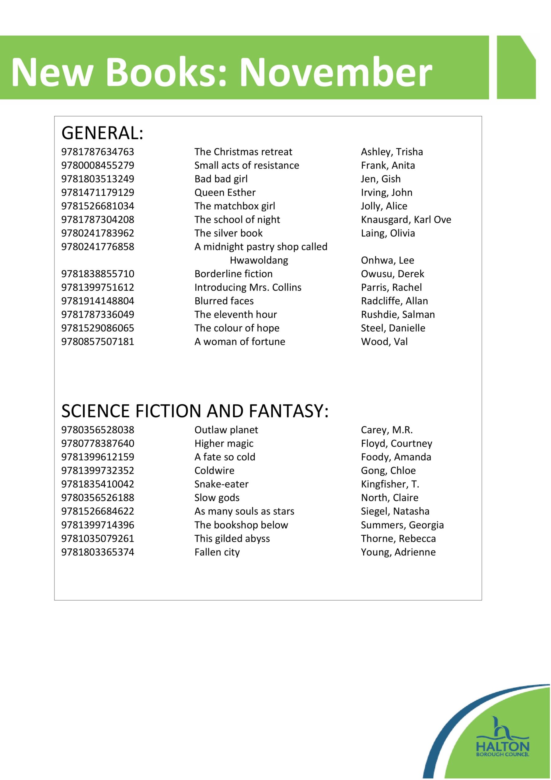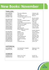 You can see our new books lists below. You can reserve these books and more online through our library catalogue