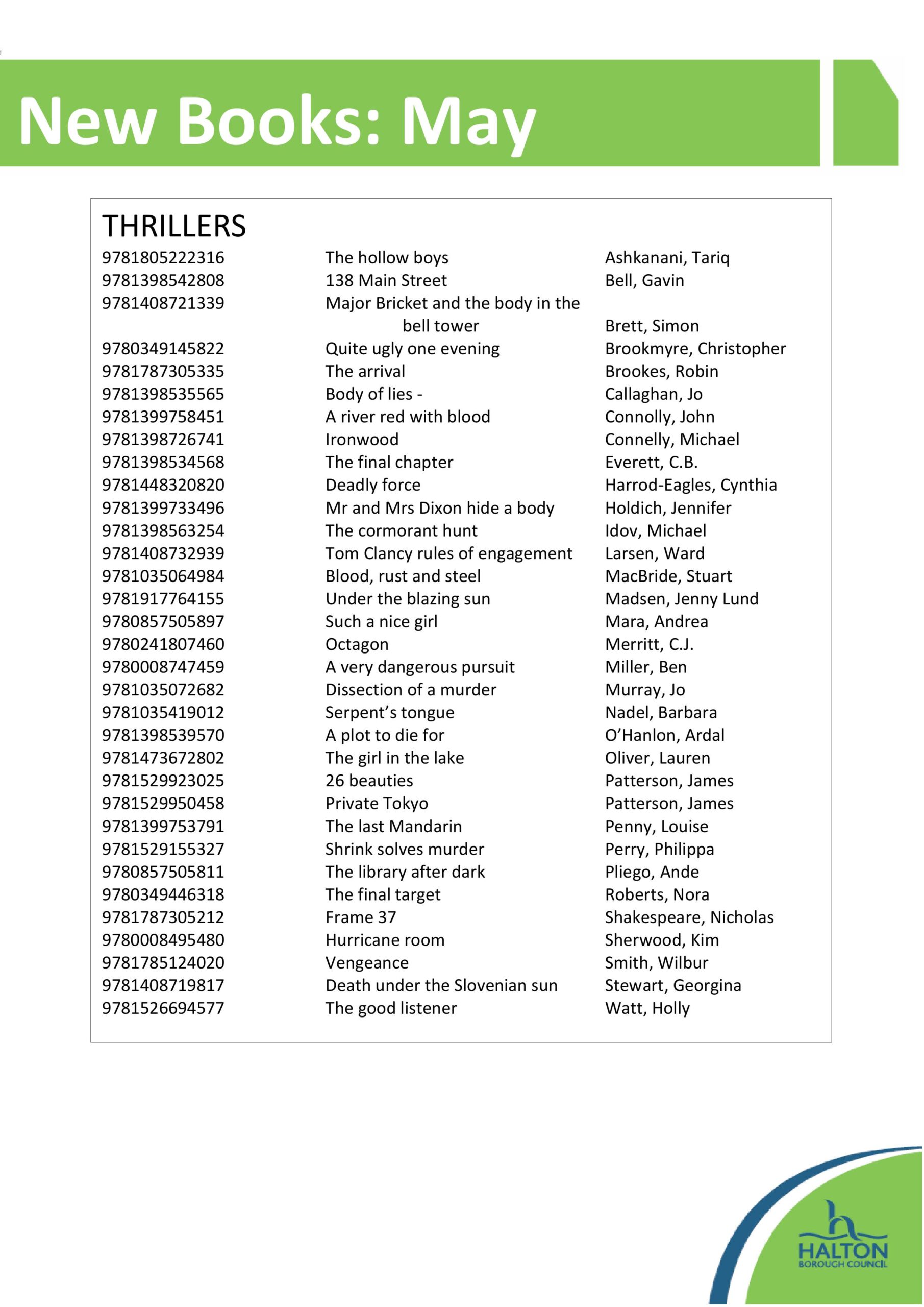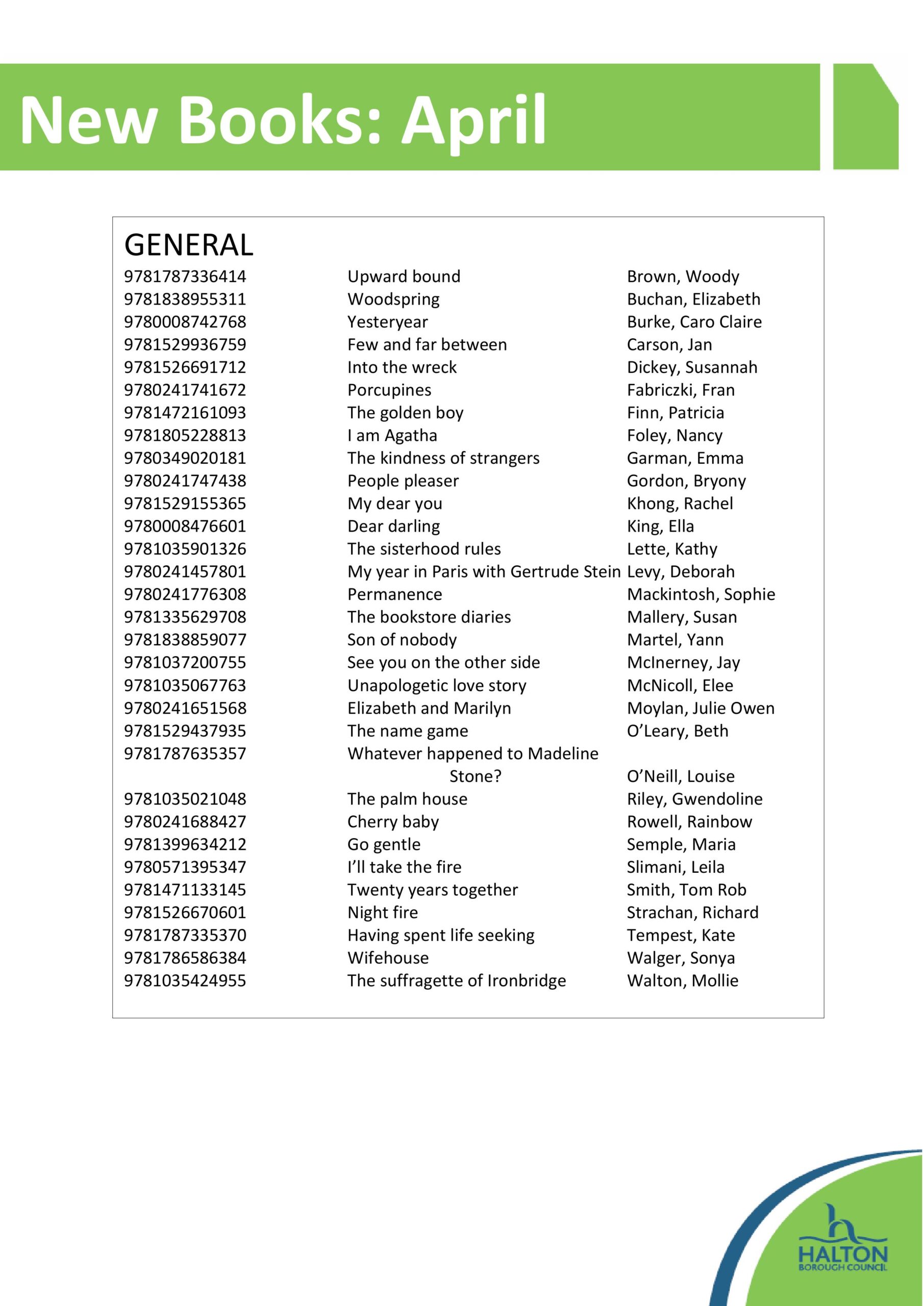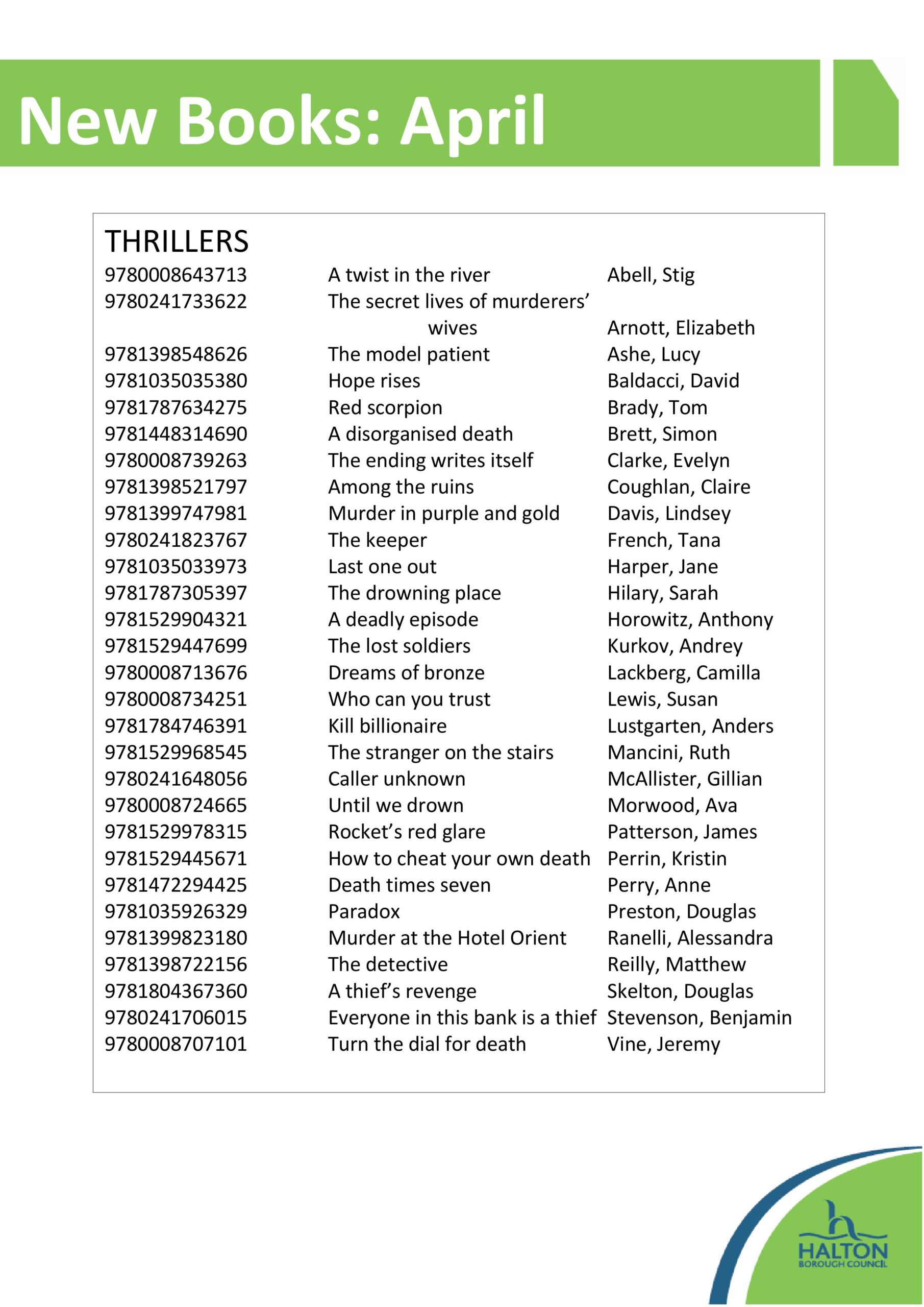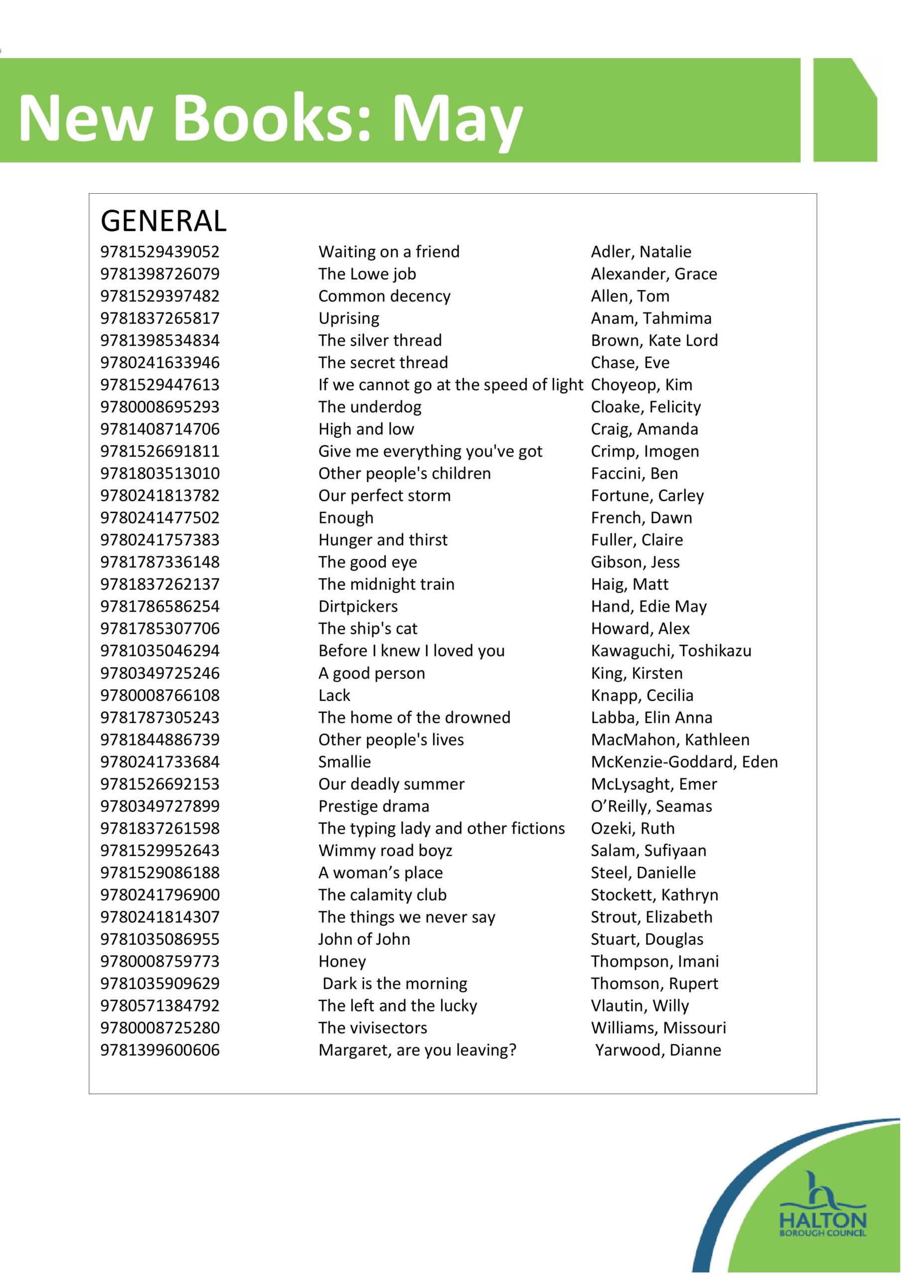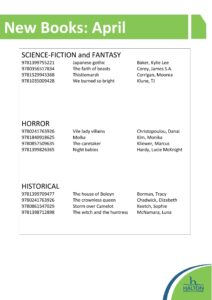You can see our new books lists below. You can reserve these books and more online through our library catalogue